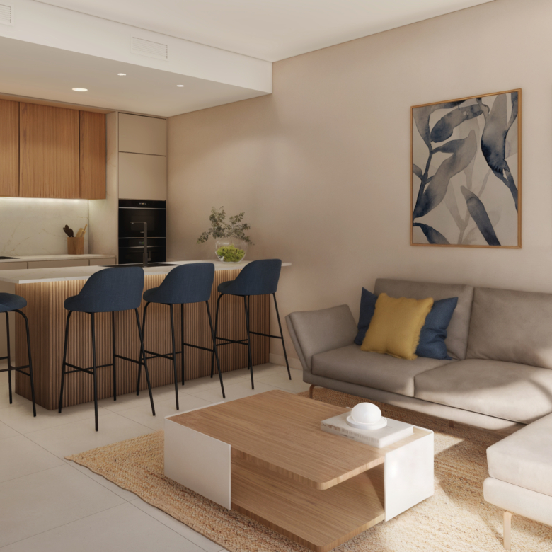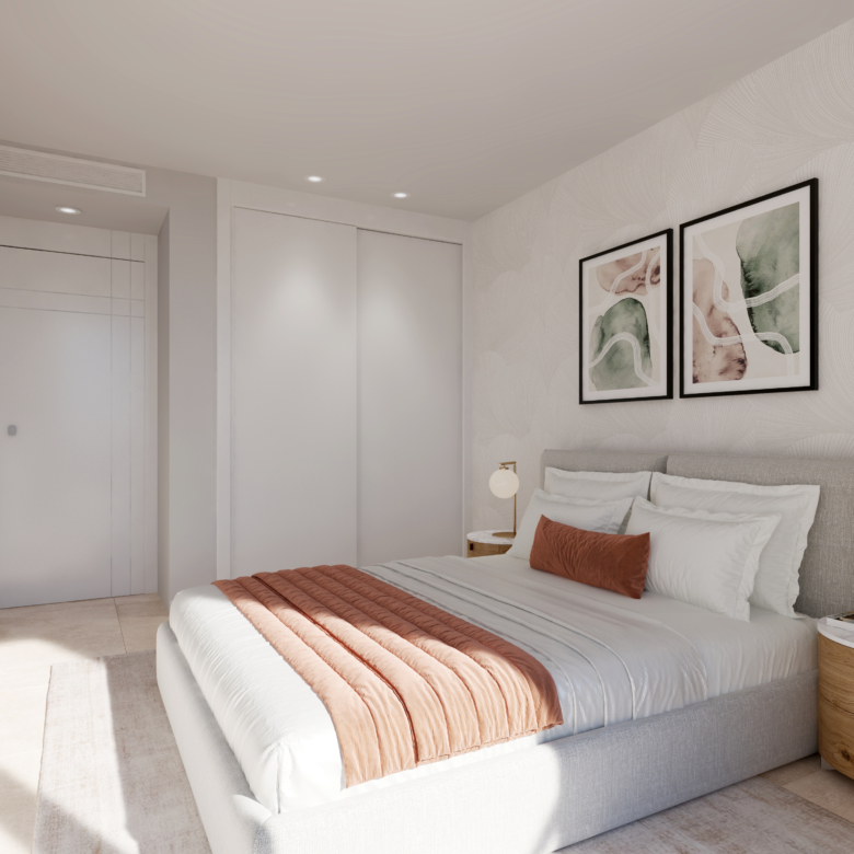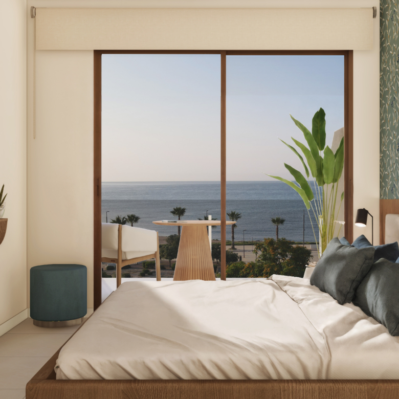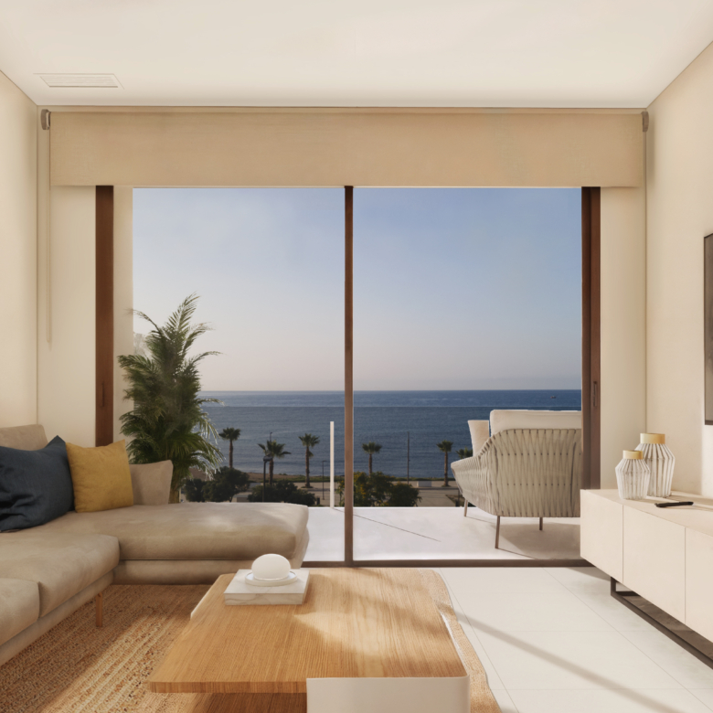 Exclusivo apartamento en primera línea, con 103 m² construidos, que destaca por su amplitud, luminosidad y ubicación privilegiada. La vivienda cuenta con un dormitorio espacioso, diseñado para ofrecer confort y tranquilidad, y un amplio salón que se convierte en el corazón del hogar, ideal para disfrutar de la luz natural y del entorno.