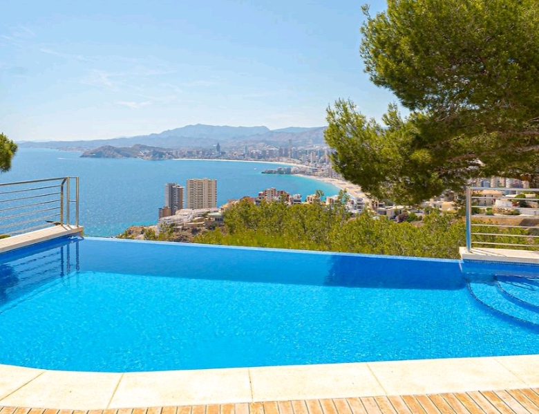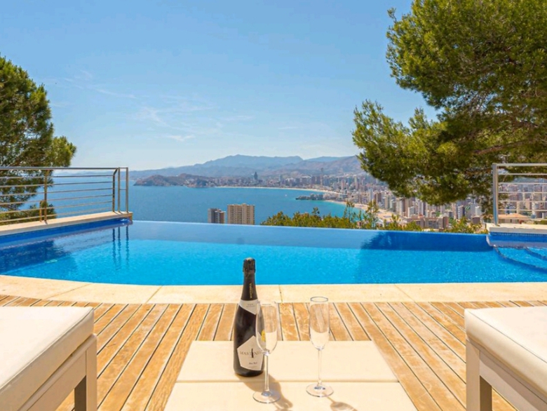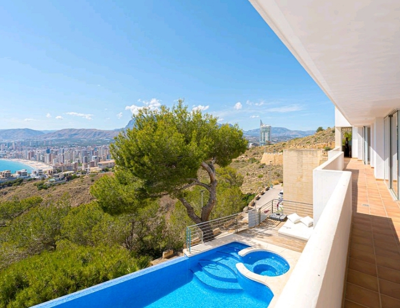 Descubre esta espectacular villa de lujo de 680 m², diseñada para quienes buscan exclusividad, amplitud y unas vistas inigualables al Mediterráneo y a la ciudad de Benidorm.
