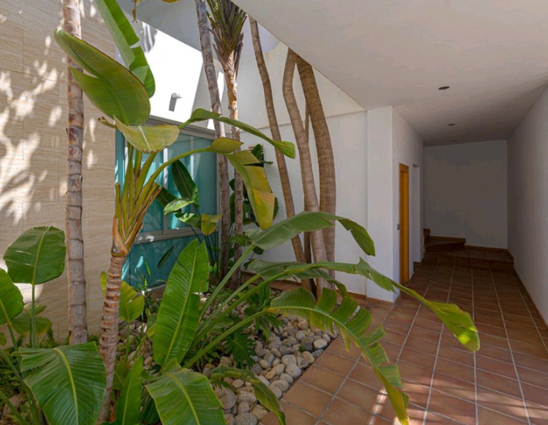 En el exterior, sobre una generosa parcela de 1.050 m², encontramos un auténtico oasis: