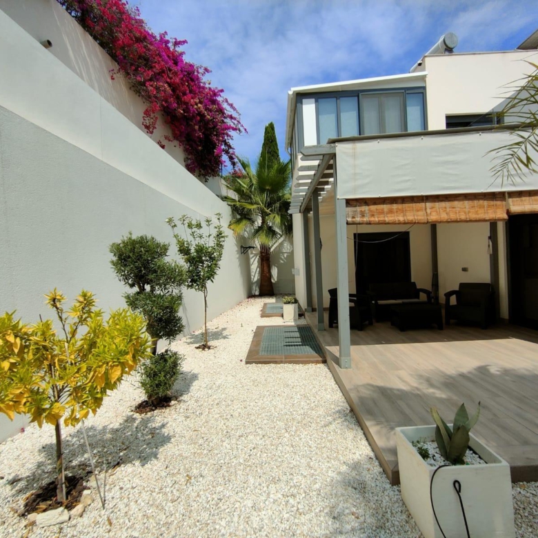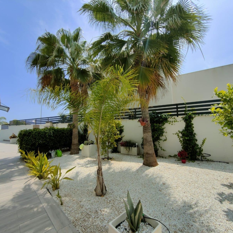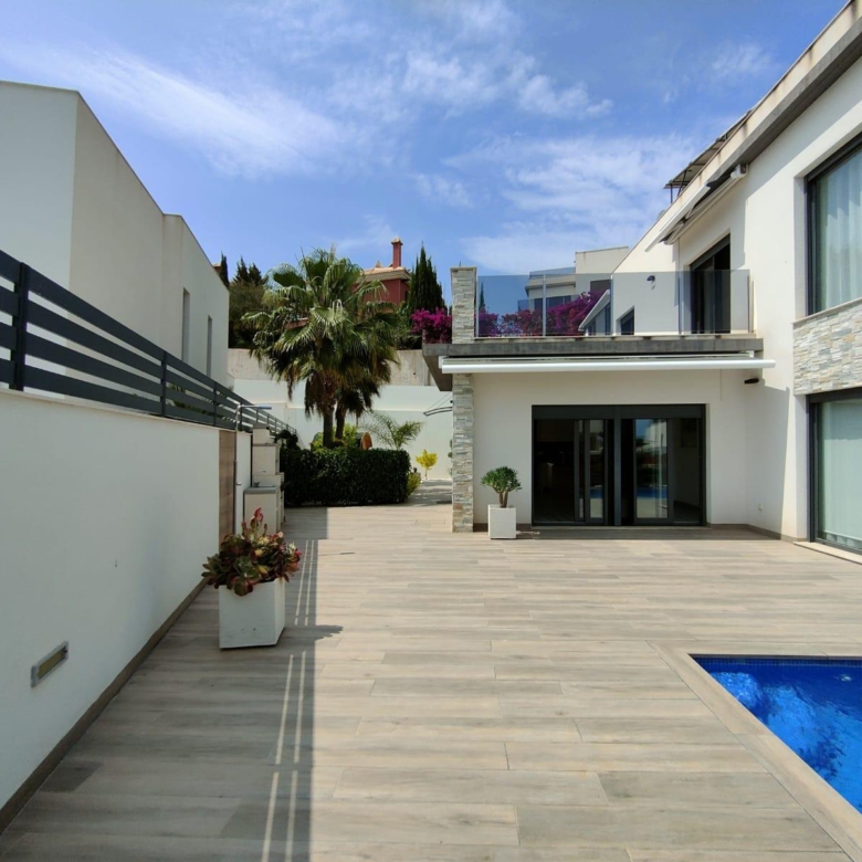 En el exterior, disfruta de una impresionante piscina infinita, amplias terrazas soleadas, un jardín cuidado con palmeras y árboles frutales, zona de barbacoa y parking cubierto con pérgola. Todo ello, en un entorno privado y tranquilo.