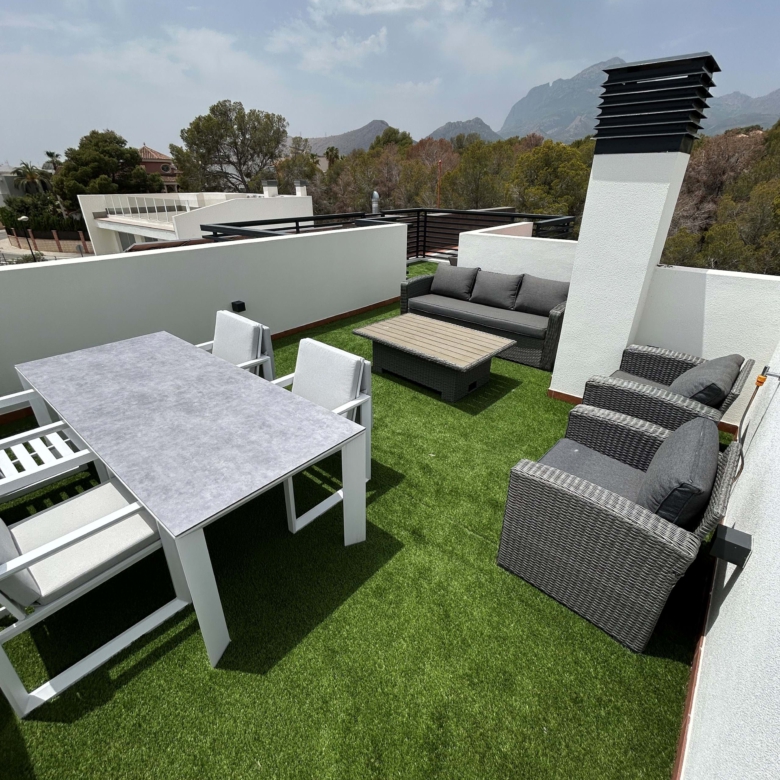 Magnífica villa de 345 m² construidos situada en una de las zonas residenciales más tranquilas y exclusivas de La Nucía. La propiedad se distribuye en tres plantas conectadas cómodamente por ascensor interior, ofreciendo amplitud, comodidad y un estilo de vida moderno.