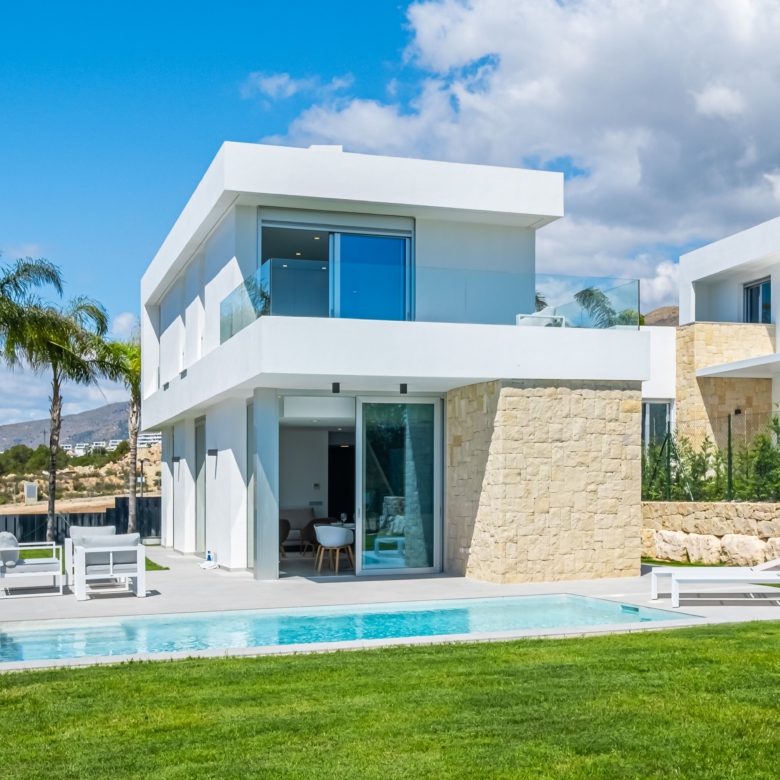 Exclusiva villa a estrenar de 127 m² construidos situada en la prestigiosa urbanización Sierra Cortina, muy cerca de Benidorm, en una zona tranquila, segura y con excelentes conexiones. Esta propiedad, comercializada por la agencia UBAGO, combina diseño moderno, funcionalidad y comodidad en todos sus espacios.
